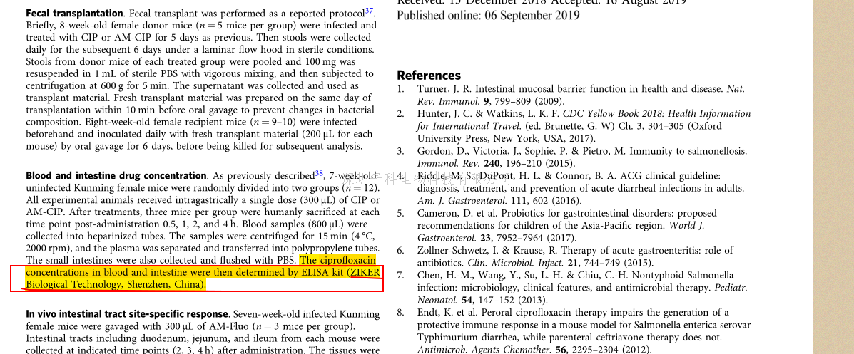 用'ZIKER’ELISA試劑盒發(fā)表高分文章!